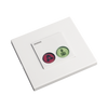 Los dos botones iluminados permiten desencadenar llamadas de petición de ayuda y urgente, así como registrar la presencia del personal en las habitaciones mediante la pulsación del botón verde o la tarjeta RFID de 125 KHz.