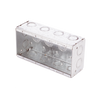 Las cajas multigang de acero galvanizado de 2 1/2' de profundidad con entradas para tubería de 1/2' y 3/4'.