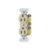 Dispositivos de hoja recta, receptáculo grado residencial, dúplex, 15A125V, conexión a tierra de 2 polos y 3 cables, 5-15R, terminales de empuje, color marfil.