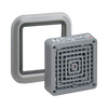 El modelo 350TR ofrece los beneficios de una instalación rápida y sencilla de montaje en superficie, ya que cada bocina se suministra con un anillo embellecedor con juntas. El modelo 350TR está encerrado en una carcasa de zinc fundido a presión y sellado con pintura gris con recubrimiento en polvo.