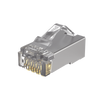 El Plug modular UTP de Categoría 5e/Clase D, de 8 posiciones y 8 hilos, se puede terminar en cable de par trenzado sin blindaje sólido o trenzado Panduit de 4 pares, 24-26 AWG, de 100 ohms con un diámetro máximo de aislamiento del conductor de 0.040 pulg. (1.02 mm).